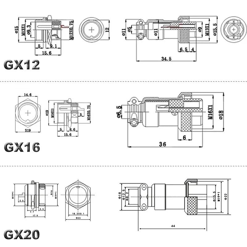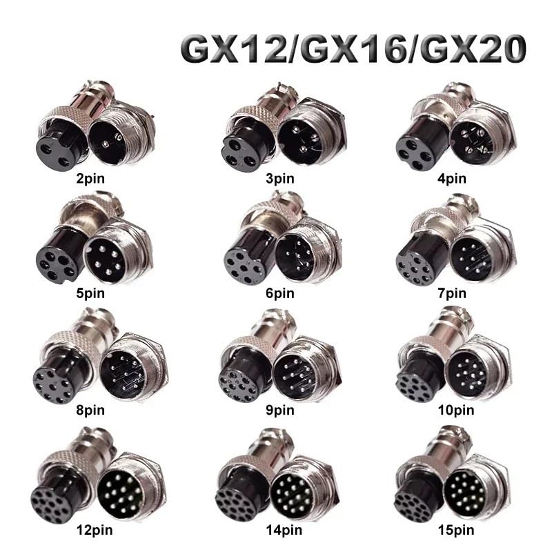 High-concerned Chem/*ical : NoneModel Number : GX12/GX16/GX20Origin : ChinaCertification : CEItem No. : GX12/GX16/GX20Mounting ho/*le Diameter : 12mm/16mm/20mmMaterial : Zinc Alloy / Copper AlloyPin Number : 2/3/4/5/6/7/8/9/10/12/14/15 pinsPacking : Female + Male Connector